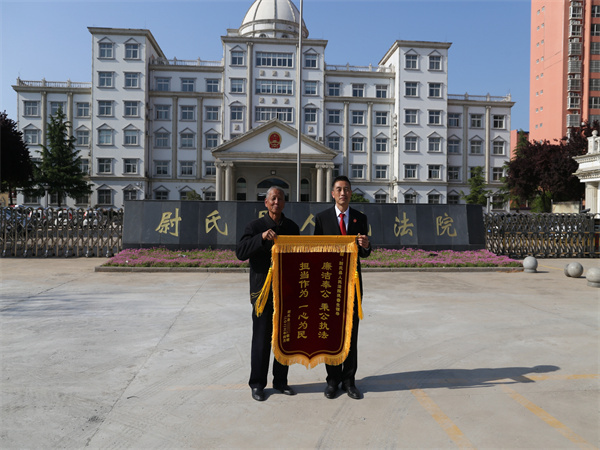 中新河南網(wǎng)4月26日電:“鞏專委、黃主任,太感謝你們了!感謝尉氏縣法院!我的案件圓滿解決了,你們真正為群眾利益著想,是人民的好法官!”4月25日,當(dāng)事人王某成將兩面印有“懷愛民之心、辦利民之事”“廉潔奉公、秉公執(zhí)法、擔(dān)當(dāng)作為、一心為民”的錦旗送到了開封市尉氏縣法院訴訟服務(wù)中心,以此表達(dá)對訴訟服務(wù)中心干警敬業(yè)盡責(zé)、為民解憂的感激之情。