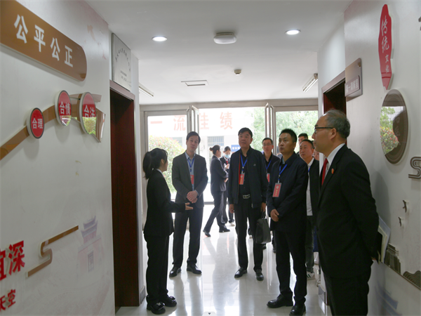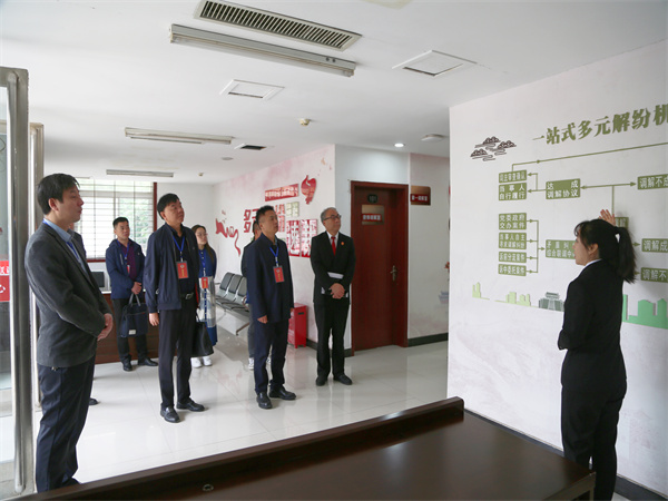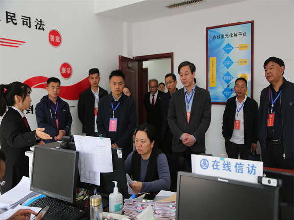 王風(fēng)來(lái)一行實(shí)地查看了矛盾糾紛多元化解中心、執(zhí)行事務(wù)接待中心、宋付振調(diào)解室、在線(xiàn)多元化解平臺(tái)工作室等辦公區(qū)域。