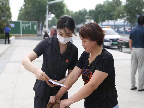 活動現(xiàn)場,干警通過懸掛宣傳橫幅、擺放圖文展板、發(fā)放宣傳資料等形式,全方位、多角度向群眾解讀《信訪工作條例》相關(guān)內(nèi)容,進一步提升《信訪工作條例》知曉率和普及率。