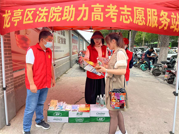 中新河南網(wǎng)6月8日電:一年一度的高考如期而至,為更好地服務考生、助力高考,6月7日上午,開封市龍亭區(qū)人民法院組織干警開展助力高考志愿服務活動。