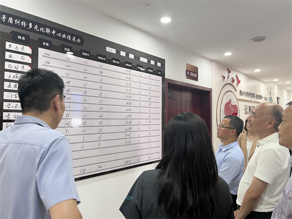 在訴前文化長廊,濃厚的調(diào)解氛圍使調(diào)研組一行駐足觀看,并對(duì)人民調(diào)解員業(yè)績展示板上的調(diào)解成績給予充分肯定。胡水明指出,要充分發(fā)揮人民調(diào)解“第一道防線”作用,進(jìn)一步為人民群眾提供高效、便捷、低成本的解紛服務(wù),助推訴源治理工作成效。