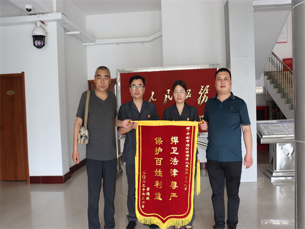 中新河南網(wǎng)7月4日電:日前,兩名當(dāng)事人冒著酷暑專程趕到開封市順河法院,將一面寫有“保護(hù)百姓利益 捍衛(wèi)法律尊嚴(yán)”的錦旗送到了行政庭庭長(zhǎng)夏天手中,表達(dá)對(duì)夏天法官的謝意。