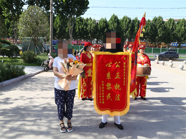 中新河南網(wǎng)7月8日電: “真的很感謝沈法官,使我的權(quán)益得到了保障,同時也讓我感受到了公平正義……”7月7日上午,開封市尉氏縣人民法院門前鑼鼓喧天。一面寫有“公正執(zhí)法、心系黎民”的錦旗送到沈鳳麗法官的手中,以此感謝沈鳳麗法官高效執(zhí)法、司法為民的公仆情懷。