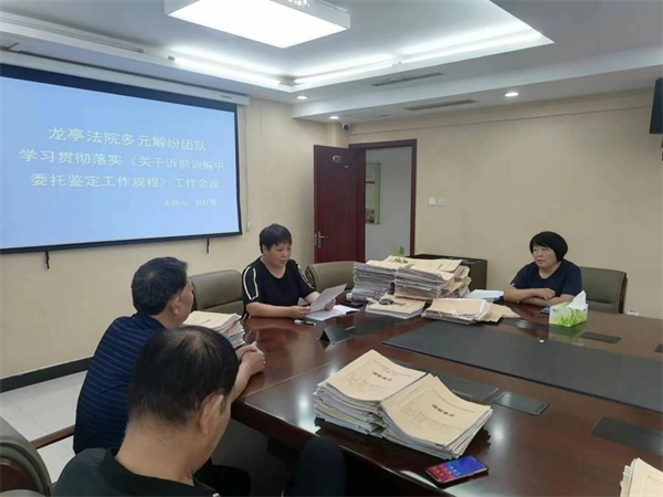 7月28日上午,龍亭法院多元解紛團隊組織調(diào)解中心各位人民調(diào)解員召開了學習貫徹落實《關(guān)于訴前調(diào)解中委托鑒定工作規(guī)程(試行)》(以下簡稱《規(guī)程》)會議,會議由人民調(diào)解員趙好景主持,各位人民調(diào)解員參加會議,龍亭區(qū)紀委監(jiān)委派駐龍亭區(qū)法院紀檢組解玉輝副組長列席。