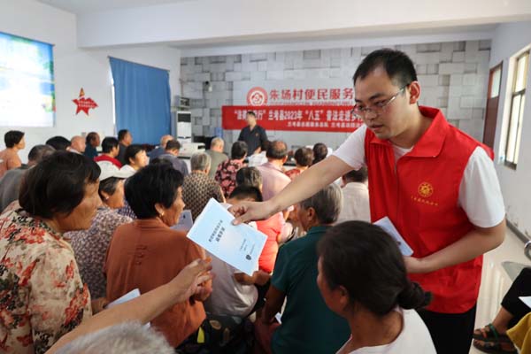 中新河南網(wǎng)9月8日電:為深入學(xué)習(xí)宣傳貫徹黨的二十大精神,進(jìn)一步強(qiáng)化農(nóng)村法治建設(shè),9月7日下午,蘭考縣法院刑事審判庭干警在黨組副書(shū)記、副院長(zhǎng)朱予東,庭長(zhǎng)劉瑛瑛的帶領(lǐng)下走進(jìn)谷營(yíng)鎮(zhèn)朱場(chǎng)村開(kāi)展防范電信詐騙主題普法宣傳活動(dòng)。