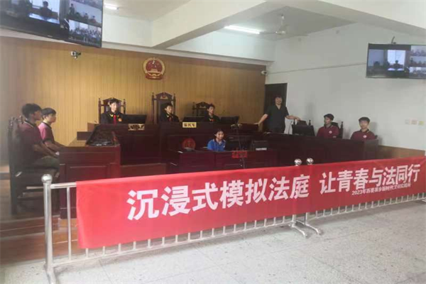 中新河南網(wǎng)9月19日電:為進(jìn)一步提高青少年法治意識(shí)和法治觀念,9月15日,河南省開(kāi)封市祥符區(qū)人民法院朱仙鎮(zhèn)人民法庭聯(lián)合河南省開(kāi)封市祥符區(qū)西姜寨鄉(xiāng)人民政府、河南省開(kāi)封市祥符區(qū)西姜寨鄉(xiāng)司法所開(kāi)展“沉浸式模擬法庭,讓青春與法同行”主題普法活動(dòng),邀請(qǐng)西姜寨鄉(xiāng)第二中學(xué)的40余名同學(xué)來(lái)到朱仙鎮(zhèn)人民法庭,在法治小課堂的知識(shí)講授和模擬實(shí)踐中感受真實(shí)的法庭環(huán)境和庭審氛圍。