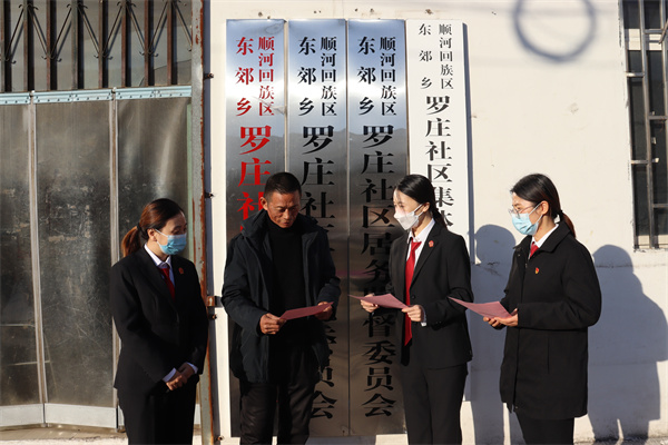 負(fù)責(zé)分包羅莊社區(qū)的第二黨支部和東郊法庭黨支部的黨員干警向社區(qū)工作人員發(fā)放了憲法讀本及相關(guān)宣傳單,解答了社區(qū)工作人員提出的法律咨詢問題。