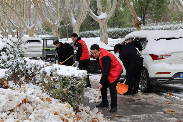清雪現(xiàn)場(chǎng),干警們不畏嚴(yán)寒、齊心協(xié)力,拿起鐵锨、雪鏟、掃帚,分工協(xié)作、相互配合,一片熱火朝天的景象。經(jīng)過(guò)連續(xù)奮戰(zhàn),不懈努力,法院機(jī)關(guān)及周邊道路積雪全部清理完畢,為過(guò)往行人和當(dāng)事人打通了安全出行的通道,讓雪后的冬天變得格外溫暖。