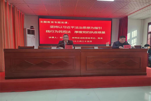 中新河南網(wǎng)12月25日電:為深入推進(jìn)學(xué)習(xí)貫徹習(xí)近平新時代中國特色社會主義思想主題教育在基層黨組織先學(xué)先行,12月25日,河南省開封市祥符區(qū)人民法院黨組書記、院長孫照君來到羅王鎮(zhèn),以“堅(jiān)持以習(xí)近平法治思想為指引,踐行為民司法,厚植黨的執(zhí)政根基”為主題,為村鎮(zhèn)兩級干部講授主題教育專題黨課,羅王鎮(zhèn)黨委書記宋建鑫主持會議。