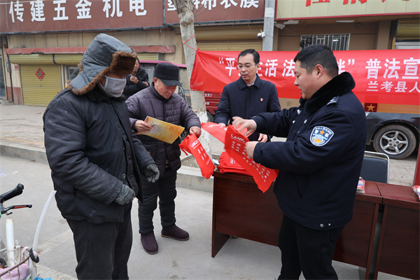中新河南網(wǎng)1月31日電:人民法庭是為群眾排憂解難、定紛止?fàn)幍那把仃嚨,是參與社會(huì)綜合治理、服務(wù)全面推進(jìn)鄉(xiāng)村振興戰(zhàn)略的重要抓手。臨近春節(jié),為深化平安蘭考建設(shè),切實(shí)讓法治理念走進(jìn)基層。1月31日,蘭考縣法院考城法庭在考城鎮(zhèn)人員密集的社情民意中心附近開展了“平安生活 法治相伴”戶外宣傳活動(dòng)。