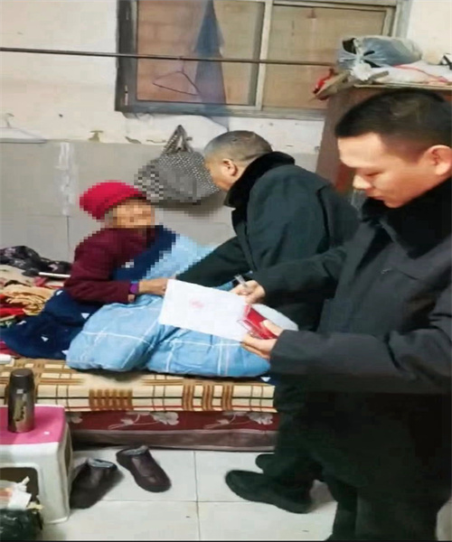 在法庭收到執(zhí)行錢款后,執(zhí)行人員對被執(zhí)行人的家屬進(jìn)行了耐心的說服教育。這時,已經(jīng)是深夜,蔡莊法庭庭長曹磊帶領(lǐng)執(zhí)行人員踏著厚厚的積雪,來到了老太太的家中。他們細(xì)心地詢問了老太太的生活情況,得知老太太還沒有吃飯,身上只蓋著一張薄薄的被子,而外面則是冰天雪地,屋里沒有任何取暖設(shè)備。他們趕忙讓老太太的家人做飯,給老太太加了一床厚被子,把案件款交到了老太太的手中。