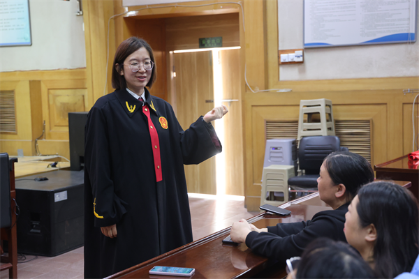 在法院干警的講解下,婦聯(lián)同志們詳細了解了立案訴訟流程、訴前調(diào)解工作及羈押室、警用裝備庫等,沉浸式感受法院的工作日常及工作氛圍。隨后來到一號法庭,共同旁聽一起關于撫養(yǎng)費糾紛的民事案件庭審。審判法官侯丹丹嚴格把控庭審程序,耐心安撫雙方當事人情緒,有條不紊的開展法庭調(diào)查、舉證質(zhì)證、法庭辯論等庭審環(huán)節(jié)。庭審結束后,侯丹丹法官向婦聯(lián)同志們講解了常用的調(diào)解方法和技巧,切實提升了她們解決矛盾糾紛問題的能力,為今后以更強的法治思維參與家事糾紛的訴源治理工作奠定了堅實基礎。