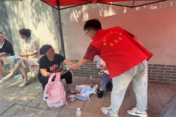 在學(xué)校門口,干警志愿者們一大早就在現(xiàn)場(chǎng)支起了紅色帳篷,方便考生和家長(zhǎng)臨時(shí)休息,并準(zhǔn)備了水、日常藥品等愛心物資,以應(yīng)對(duì)各種突發(fā)小狀況,全力協(xié)助考生順利應(yīng)考。同時(shí),志愿者們主動(dòng)維護(hù)現(xiàn)場(chǎng)秩序,向家長(zhǎng)和考生宣傳《民法典》、反詐騙等法律知識(shí),提醒他們提高警惕,一定要通過官方網(wǎng)站途徑查詢信息,切莫輕信假招生網(wǎng)站虛假宣傳,避免在報(bào)考時(shí)上當(dāng)受騙。志愿者們熱情、細(xì)心的服務(wù),得到學(xué)生及家長(zhǎng)的贊賞。