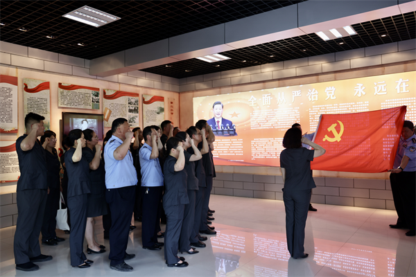 參觀結(jié)束后,全體黨員重溫入黨誓詞,接受黨性洗禮,鏗鏘有力的誓言,宣示著堅(jiān)定不移的理想信念。