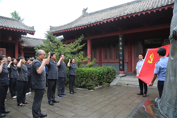 參加活動(dòng)的黨員干警面向黨旗,舉起右拳,重溫入黨入警誓詞,通過錚錚誓言向黨和人民作出莊嚴(yán)承諾。隨后,大家先后參觀了包公生平陳列廳、包公紀(jì)念陳列廳、包公司法陳列廳和中國歷代司法文化陳列廳,通過展廳內(nèi)大量詳實(shí)的歷史文獻(xiàn)資料以及包公審牛舌案、審匿金案等斷案故事,學(xué)習(xí)了包公一生鐵面無私、嚴(yán)明執(zhí)法、公正廉潔、為民請(qǐng)命的感人事跡。