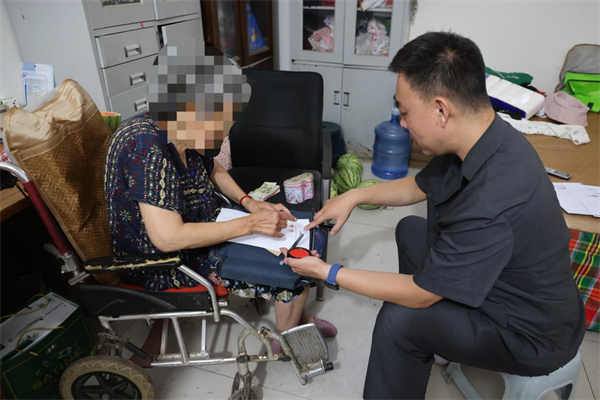 中新河南網(wǎng)7月10日電:“謝謝法官,壓在我們心中的石頭終于落了地,不僅幫我們要到了錢,還直接送到手上,真是太感謝了!”近日,開封市鼓樓區(qū)人民法院執(zhí)行干警張亞樂在涉案執(zhí)行案款到賬后,考慮到申請(qǐng)執(zhí)行人孫老太年近八旬、行動(dòng)不便,利用下班時(shí)間送款上門,將司法的溫暖送至群眾家中。拿到執(zhí)行案款的孫老太對(duì)執(zhí)行干警連連道謝。