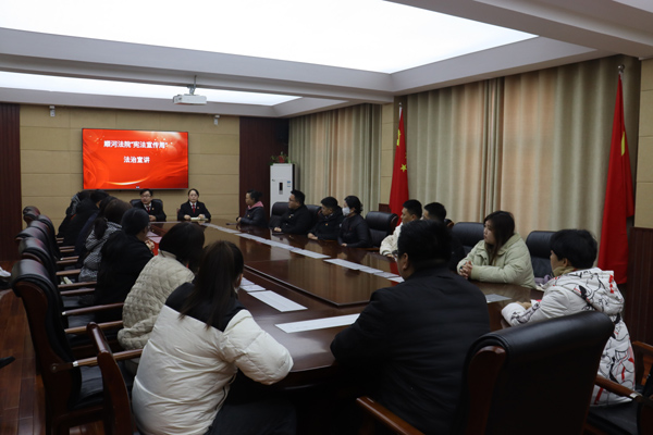 參觀結(jié)束后,順河法院審委會專委、行政庭庭長夏天和行政庭副庭長陸春彥對社區(qū)干部進(jìn)行一場生動的法治宣講。通過淺顯易懂的語言,結(jié)合生活實際場景,帶領(lǐng)大家認(rèn)真學(xué)習(xí)深入領(lǐng)會了憲法的基本內(nèi)容以及“國家憲法日”的相關(guān)知識;舆^程中,大家積極交流,氣氛活躍。此次活動為社區(qū)工作人員與法院之間搭建起了溝通的橋梁,一方面提升社區(qū)工作人員的法治意識,提升司法效率,同時法院通過社區(qū)工作人員了解到基層群眾的司法需求,進(jìn)一步改進(jìn)工作,提升司法服務(wù)水平。