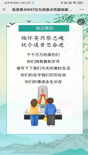 日前,新蔡縣審計(jì)局開展以緬懷先烈銘記歷史、弘揚(yáng)英烈精神為重點(diǎn)的網(wǎng)上祭掃活動(dòng),致敬英烈。各位黨員干部通過“今日駐馬店”APP,選擇祭奠地點(diǎn),了解就近的革命烈士紀(jì)念館,緬懷英烈忠魂,撫今追憶思奮進(jìn)。