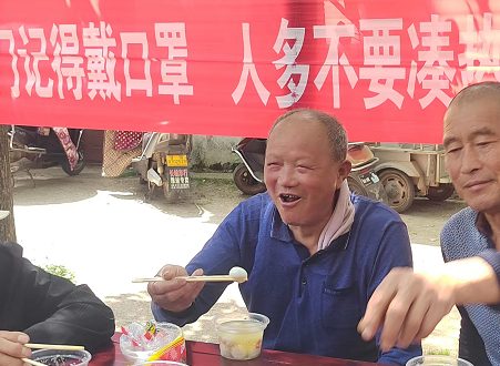 在活動(dòng)現(xiàn)場,鄉(xiāng)機(jī)關(guān)干部和馮樓村志愿者齊上陣,洗菜、和面、布置桌凳,大家圍坐在一起,揉面、搟皮、包餃子。老人們看著正在忙碌的志愿者們,激動(dòng)地說到:“今年的疫情讓孩子們春節(jié)、清明節(jié)都沒回來,本來心里有點(diǎn)不是滋味,可是今天村里邀請(qǐng)我們參加餃子宴,心里暢快了、高興了,真的感謝黨。”鄉(xiāng)主要領(lǐng)導(dǎo)和志愿者為老人端上一碗碗熱氣騰騰的餃子,老人們吃著愛心水餃,臉上洋盛滿了笑容,歡聲笑語中,孝善之花悄然綻放。