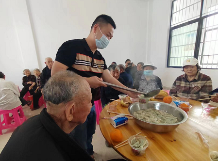 中新河南網(wǎng)4月25日電(蘇文軍 劉倩倩)4月22日一大早,走進信陽平橋區(qū)長臺關(guān)鄉(xiāng)母子河村的村委會,印入眼簾的是一番熱火朝天的景象,村干部、群眾和志愿者們齊上陣,準備餐具、布置桌凳、包餃子,大家分工明確,熱情滿滿,快樂洋溢在每個人臉上。大家一起包餃子、嘮家常,平安面裹幸福餡,把對老人的關(guān)愛與溫情一起包進餃子里。