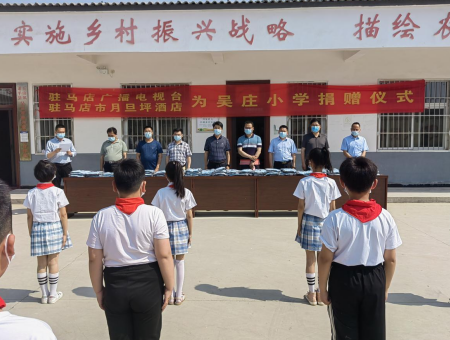 中新河南網(wǎng)5月26日電 5月25日上午,駐馬店市廣播電視臺攜手駐馬店市月旦坪酒店到玉山鎮(zhèn)吳莊村,舉行愛心校服捐贈儀式。參加捐贈儀式的有駐馬店廣播電視臺黨組成員、副臺長劉榮亞,玉山鎮(zhèn)鎮(zhèn)長陳哲宇、駐馬店廣播電視臺科教頻道總監(jiān)馮亮、駐馬店尚明教育董事長李明超、駐馬店月旦坪大酒店總經(jīng)理李俊立、玉山鎮(zhèn)中心校校長牛新坡、吳莊村駐村第一書記曾龍、吳莊村黨支部書記黃明喜。