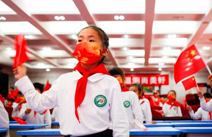 面向隊(duì)旗,一年級(jí)的新隊(duì)員們右手握拳、莊重宣誓:“我是中國少年先鋒隊(duì)隊(duì)員,我熱愛中國共產(chǎn)黨,熱愛祖國,熱愛人民,好好學(xué)習(xí),好好鍛煉,準(zhǔn)備著:為共產(chǎn)主義事業(yè)貢獻(xiàn)力量!”
