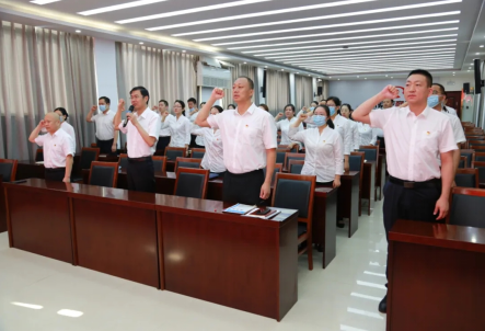 全體黨員干部一起面向黨旗,舉起右手,在黨委書記、董事長(zhǎng)閔偉的帶領(lǐng)下莊嚴(yán)宣誓:“我志愿加入中國(guó)共產(chǎn)黨,擁護(hù)黨的綱領(lǐng),遵守黨的章程,履行黨員義務(wù),執(zhí)行黨的決定……”。一次重溫,就是一次升華,右手握拳、挺胸抬頭、目光堅(jiān)毅、擲地有聲。通過(guò)儀式感召,進(jìn)一步增強(qiáng)對(duì)黨忠誠(chéng)、積極工作、為共產(chǎn)主義事業(yè)奮斗終身的信心和決心,以更加飽滿的熱情發(fā)揮共產(chǎn)黨員的先鋒模范作用,永葆共產(chǎn)黨員的政治本色。