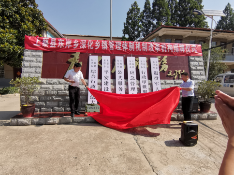 上蔡縣東岸鄉(xiāng)舉行深化鄉(xiāng)鎮(zhèn)管理體制機(jī)制改革機(jī)構(gòu)揭牌儀式