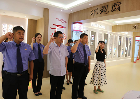 會后,全體參會人員在四樓警示教育中心面向黨旗重溫入黨誓詞。干警們紛紛表示,將進一步堅定理想信念,常懷敬畏之心,嚴守司法公正底線,踔厲奮發(fā),賡續(xù)前行,譜寫項城檢察新篇章,以優(yōu)異成績迎接黨的二十大勝利召開。