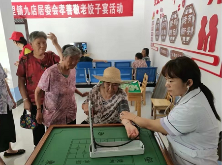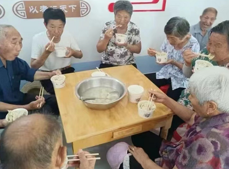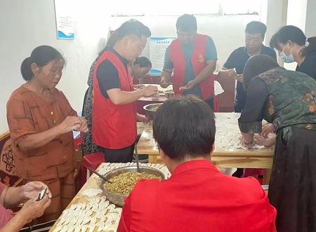 在九店老年日間照料中心,老人們?nèi)宄扇簢Z著家常,不時(shí)發(fā)出歡快的笑聲,等候餃子宴開(kāi)席,有的甚至親自包起了餃子。十余名志愿者提前到場(chǎng)和面、搟皮兒、包餃子、煮餃子等工作,忙得不亦樂(lè)乎。同時(shí),居委會(huì)還邀請(qǐng)了村文化宣傳隊(duì)為老人們表演,鎮(zhèn)衛(wèi)生院工作人員為老人們義診,宣講醫(yī)療保健知識(shí),將健康送到老人身邊;顒(dòng)期間,五里鎮(zhèn)黨委書記錢旺同志也來(lái)到餃子宴現(xiàn)場(chǎng),為老人送上祝福,與老人們親切交談,對(duì)志愿者們表示感謝,號(hào)召?gòu)V大群眾孝老愛(ài)親,營(yíng)造和諧家庭氛圍。