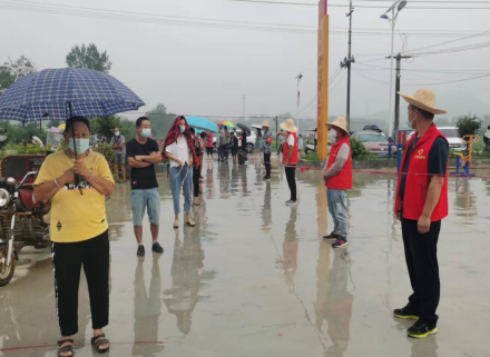 尹集鎮(zhèn)連莊村自疫情防控封村、連續(xù)8天核酸檢測以來,尹集鎮(zhèn)黨委分包該村的黨委委員李紅巖、包村鎮(zhèn)機(jī)關(guān)干部尹冠甫、趙俊杰,以及該村黨支部書記王瑞祥帶領(lǐng)全村20多名黨員干部、村民代表、回鄉(xiāng)大學(xué)中學(xué)生代表志愿者,為了應(yīng)對每天的炎炎赤日高溫,以及雨天值班,每人戴著草帽開展工作。他們在核酸檢測現(xiàn)場組織村民掃碼、測體溫、登錄個人信息,嚴(yán)格執(zhí)行隊列間隔兩米線、戴口罩、場所定時消毒等規(guī)范操作要求,每天在近40度的高溫下一站就是4個小時,汗水濕透的衣服連續(xù)幾個小時就沒有干過。村民們看到李紅巖天天沖在一線帶領(lǐng)的戰(zhàn)疫志愿者服務(wù)隊,尊稱為“草帽哥服務(wù)隊”。在這支隊伍中41歲的村委委員蔡君麗和17歲的高二學(xué)生石瑞博是母子。