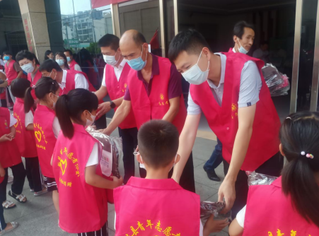 活動中為青少年學(xué)生發(fā)帶有七彩假期標(biāo)志的書包。