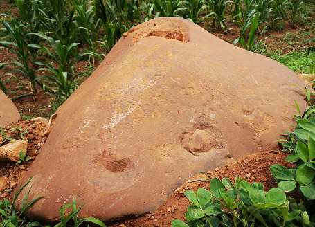 最近,在該遺址周邊10平方公里范圍內(nèi),發(fā)現(xiàn)一處大型史前凹穴巖畫群。凹穴巖畫一指在石頭、石壁上,用敲鑿和研磨的方法制作而成的凹穴狀的巖畫形式。蠻城嶺凹穴巖畫群發(fā)現(xiàn)的這種巖畫,有日月、星象、動(dòng)物、植物、山峰、連珠、棋盤形等各種圖案,初步統(tǒng)計(jì)有10萬(wàn)余方。佷多圖案,和伊川缸上的圖案是相同的。