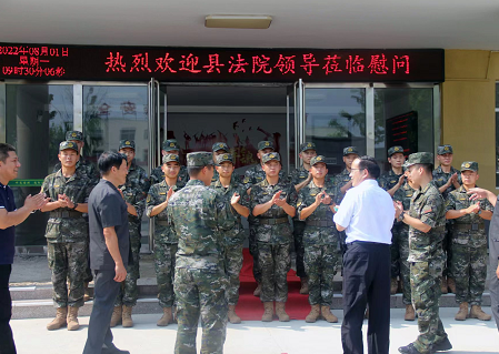 中新河南網(wǎng)8月2日電 為弘揚(yáng)擁軍優(yōu)屬、擁政愛(ài)民的優(yōu)良傳統(tǒng),8月1日,在建軍95周年到來(lái)之際,扶溝法院黨組書(shū)記、院長(zhǎng)吳冀原帶領(lǐng)院黨組成員到縣武裝部、武警中隊(duì)走訪慰問(wèn),向部隊(duì)官兵們致以誠(chéng)摯的節(jié)日問(wèn)候!
