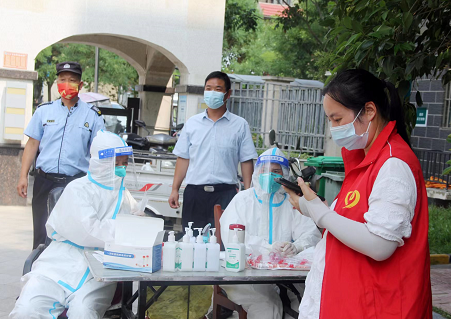 “請大家提前出示核酸檢測碼”、“請大家保持安全距離,有序排隊”、“沒有核酸檢測碼的請走這邊”。在核酸檢測現(xiàn)場,法院志愿者們主動落實責任,明確各自分工,積極做好人員引導、秩序維持、答疑解惑等各項工作。他們頂著高溫酷暑,任憑汗水浸透衣衫,依舊堅守在現(xiàn)場,默默奉獻著自己的力量,為核酸檢測工作平穩(wěn)有序運轉提供了堅實的保障。