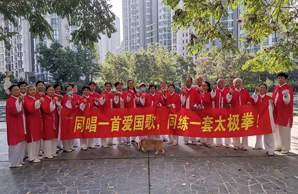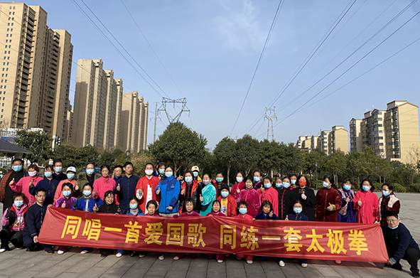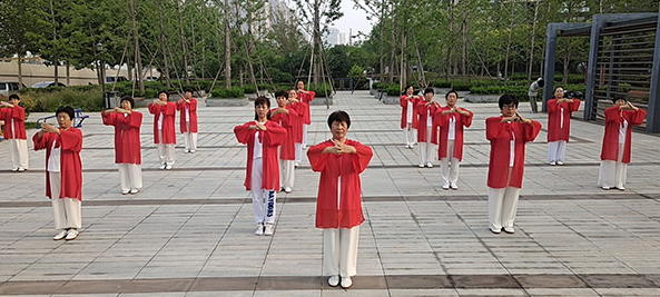 “如果信仰有顏色,那一定是中國(guó)紅”。社區(qū)太極愛(ài)好者在陳式太極拳第十二代傳人曹沁紅女士的帶動(dòng)傳播下,自成體系,相互交流學(xué)習(xí),每天堅(jiān)持練習(xí),影響了許多社區(qū)零基礎(chǔ)的太極愛(ài)好者參加太極習(xí)練,組成了社區(qū)紅色太極團(tuán)隊(duì),同時(shí)也在愛(ài)心團(tuán)隊(duì)社會(huì)指導(dǎo)員隊(duì)長(zhǎng)們的組織下,大家自覺(jué)自律的生活方式,科學(xué)的太極養(yǎng)生運(yùn)動(dòng),相互關(guān)心,不斷學(xué)習(xí)提升中,使許多人更是循序漸進(jìn)的受益了太極健康。同時(shí),她們的紅色披沙也為城市增添了一道靚麗的風(fēng)景線。