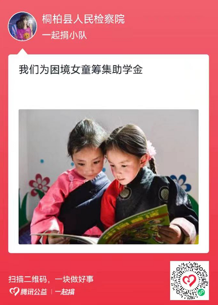 此次活動(dòng)采取線下線上兩種捐款方式,線下志愿者干警捐出現(xiàn)金,線上在院黨組的積極帶動(dòng)下,干警們從9月7日開(kāi)始至9月9日通過(guò)騰訊公益平臺(tái)進(jìn)行線上捐款。全院干警積極響應(yīng),紛紛伸出援手,參加9.9騰訊公益日捐款活動(dòng),掃碼進(jìn)“桐柏縣人民檢察院”騰訊公益募捐小隊(duì),為困境女童籌集助學(xué)金。將交由兒童少年基金會(huì)管理,用于幫助貧困女童順利完成義務(wù)教育和貧困優(yōu)秀女生圓大學(xué)夢(mèng)。