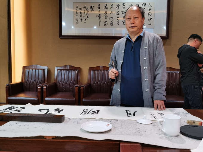 伊川縣書法家協(xié)會副主席楊四倍以行書見長,現(xiàn)場書寫了多幅作品,其作品如行云流水,一氣呵成。