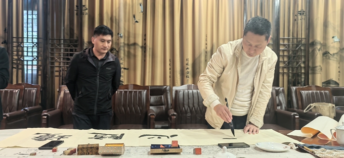 中新河南網(wǎng)10月7日電 (趙民強(qiáng) 張會濤)為慶祝建國74周年,10月6日由洛陽龍鳳山景區(qū)、伊川縣書法家協(xié)會、洛陽祥和電纜有限公司正光電纜三家聯(lián)合在龍鳳山古鎮(zhèn)舉行了金秋雅集書法筆會活動(dòng)。伊川書法家們飽蘸筆墨熱情謳歌新時(shí)代,以書法的形式贊美祖國,慶祝偉大祖國74歲華誕!