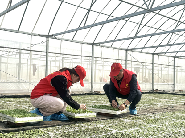 黨旗迎風(fēng)飄,黨員一線忙。此次主題黨日活動(dòng),黨員干部轉(zhuǎn)換身份,埋頭躬身于綠色大棚間,遍地綠色煙苗的育苗棚內(nèi)布滿紅色“小馬甲”映照綠色煙苗,形成了一道亮麗的風(fēng)景線,為伊煙騰飛插上了翅膀。