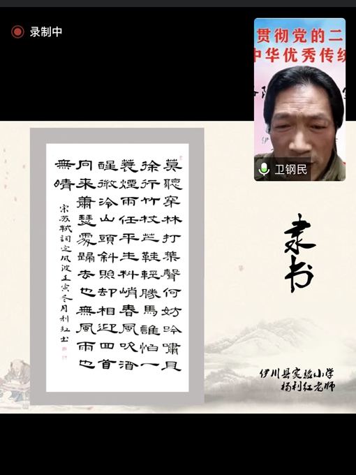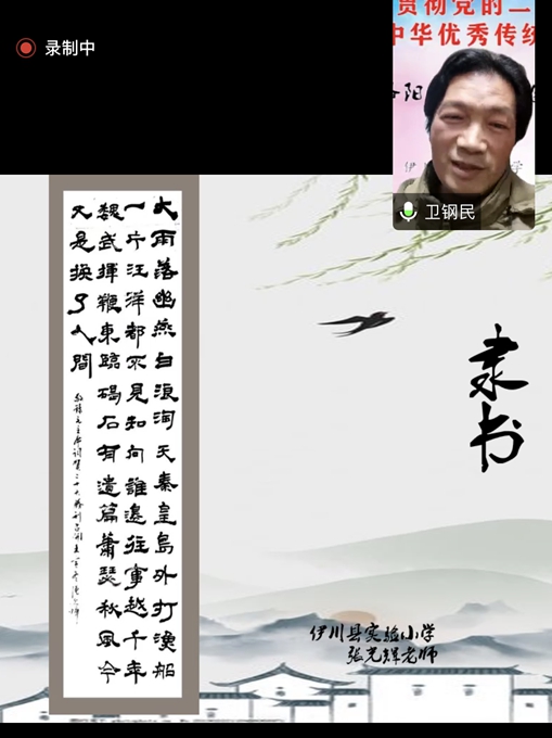 中新河南網12月17日電 (趙民強)16日晚,伊川縣實驗小學“第二屆洛陽市書法名家進校園"的活動,通過線上順利召開,活動得到了洛陽市書法家協會、伊川縣教研室的大力支持。