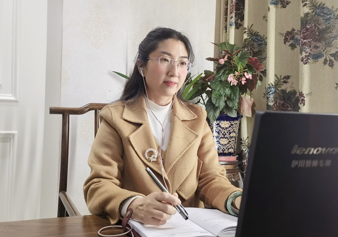 伊川縣實驗小學校長殷小麗首先通過線上,向大家介紹了學校書法教育開展情況和本次活動的意義。