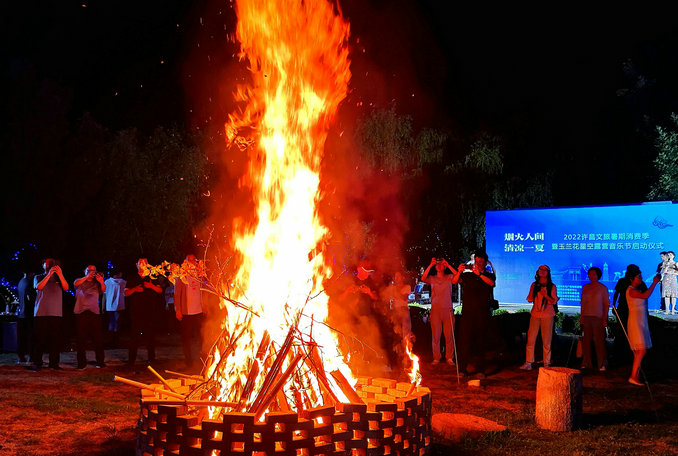 浪漫夜空下,熊熊燃燒的篝火將“玉蘭花露營基地”映照得炫彩奪目。伴著音樂節(jié)的音樂緩緩響起,大家一邊賞閃爍星空、品涼爽啤酒、吃精美糕點(diǎn)、看精彩節(jié)目、聽優(yōu)美音樂,感受夢幻的夜晚時(shí)光,感受夏夜的清涼,發(fā)現(xiàn)不一樣的許昌,尋找心靈深處的詩與遠(yuǎn)方。