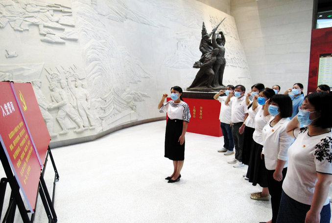 支部委員王彩芬?guī)ьI(lǐng)大家舉起右拳,面對鮮紅的黨旗莊嚴(yán)宣誓。“我志愿加入中國共產(chǎn)黨,擁護(hù)黨的綱領(lǐng)......”這聲聲誓言既表達(dá)了大家對先烈的敬仰,也是一份鄭重的承諾和為共產(chǎn)主義事業(yè)奮斗終身的決心。