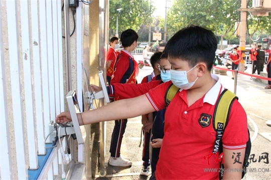 同學(xué)們著裝整齊,保持安全距離,分時段錯峰入校,按照導(dǎo)行線,經(jīng)紅外測溫儀檢測無異常后,從安全通道有序入校。張張笑臉、聲聲問候,讓開學(xué)第一天的清晨充滿溫馨和甜蜜。