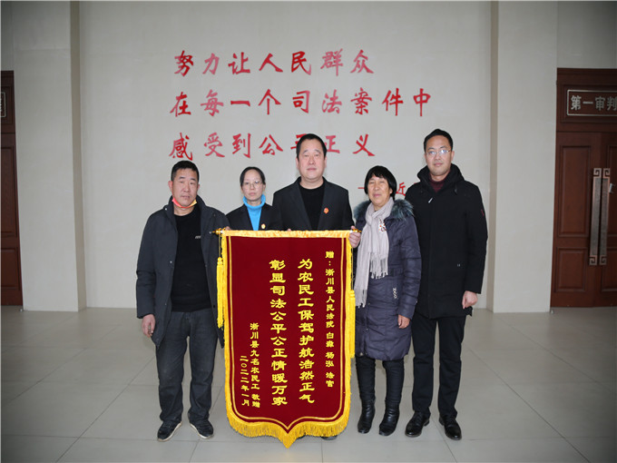 中新河南網(wǎng)2月7日電(李克選 全曉宇)“這些錢都是我們的辛苦錢,謝謝法官了,多虧有你們的高效調(diào)解,春節(jié)前才能拿到血汗錢!”2022年1月26日,2名農(nóng)民工代表9名工友將一面印有“為農(nóng)民工保駕護(hù)航浩然正氣 彰顯司法公平公正情暖萬家”的錦旗送給楊泓團(tuán)隊(duì),表達(dá)他們對(duì)法官的感激之情。