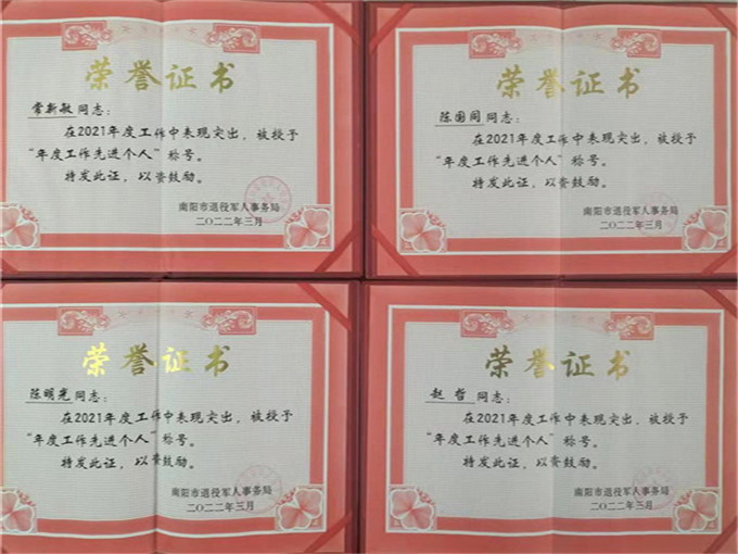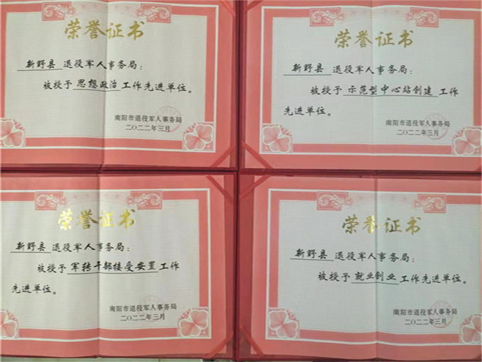 新野縣作為兵源大縣、優(yōu)撫大縣、安置大縣,自組建退役軍人事務工作機構以來,全體工作人員在縣委、政府的正確領導下,在上級退役軍人事務部門的指導關愛下,瞄準一流業(yè)績,拉高標桿,砥礪前行,各項工作均處在全市的前列。特別是在2021年度,被國家退役軍人事務部確定為退役軍人思想政治工作試點縣。全體人員在局黨組的帶領下,牢記使命,不忘初心,以黨史學習教育為動力,以敢為天下先的勇氣魄力,先行先試,開拓創(chuàng)新,思想政治工作、移交安置工作、優(yōu)撫褒揚工亮點紛呈。機關內部風清氣正、團結合作,工作人員忠誠擔當、開拓進取,縣直和鄉(xiāng)鎮(zhèn)退役軍人事務工作者,認真履行職責,以退役軍人滿意為目標,用心服務,在平凡的工作崗位默默散發(fā)著光和熱,為退役軍人事務工作的持續(xù)健康發(fā)展做出自己的貢獻。