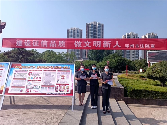 中新河南網(wǎng)6月16日電(李克選 李涵玉 朱小旭 肖怡楠)為著力打造誠信守法的營商環(huán)境,提高群眾和企業(yè)的信用意識和維權(quán)意識,6月16日,鄧州市人民法院組織干警到鄧州市人民公園開展以“建設(shè)征信品質(zhì) 做文明新人”為主題的宣傳活動。