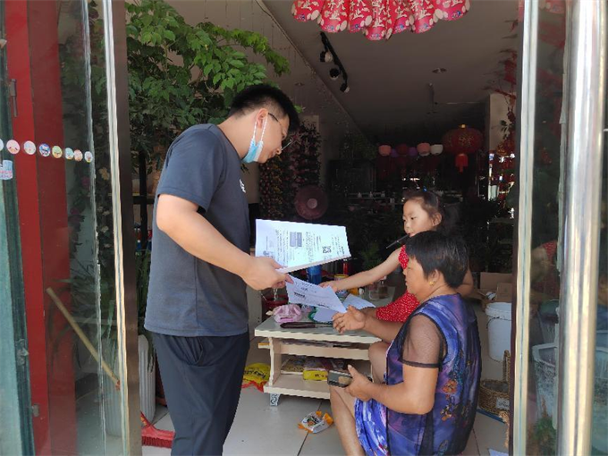 中新河南網(wǎng)7月22日電(鄭翠 劉峰)為進一步提高廣大人民群眾對平安建設(shè)的知曉度、參與度,助推更高水平平安郭灘建設(shè),7月19日,郭灘鎮(zhèn)黨委政府、郭灘鎮(zhèn)司法所、郭灘鎮(zhèn)派出所組成政法宣傳隊,在郭灘鎮(zhèn)轄區(qū)內(nèi)組織工作人員、網(wǎng)格員以及志愿者深入到居民家中以及街道商鋪開展了平安建設(shè)入戶宣傳活動。