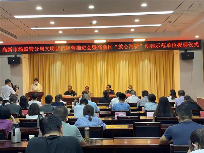 高新市場監(jiān)管局:召開文明誠信經(jīng)營推進會暨“放心消費”創(chuàng)建示范單位授牌儀式表